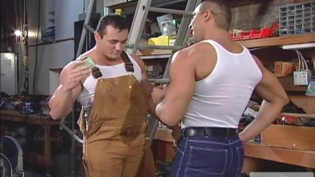 Construction worker Ace Hanson must know someone at INS because he managed to get his buddy Alex Fuerte a green card. When Fuerte complains about the money he must pay for it, Hanson decides to raise the price and refuses to turn over the card until he gets his cock sucked. Fuerte really needs the card (and really wants the muscle-man's dick) so he gets to work. Hanson's cock is rock-hard and he's not going to be satisfied until he's plowed the gorgeous Latin man's ass. Fuerte decides he's paid enough and throws beefy bad-boy Hanson on his back and shoves his 9-inch uncut cock deep into Hanson's muscled-up ass. Both men get more than their money's worth when they blow their thick hot loads all over the warehouse.