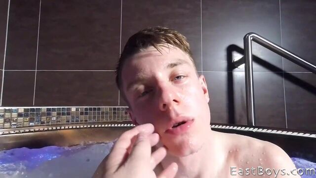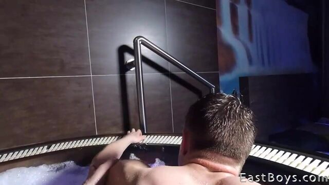 Victor Schuman, tall lanky dude with nice ripped muscular body gets felt up by Mr. Jobs in the shower, and his dick immediately springs into action. Now lets enter hot tub, where fun continues with cock massage and ass fingering. Now who is going to have honor to do the jerk-off? Find out!