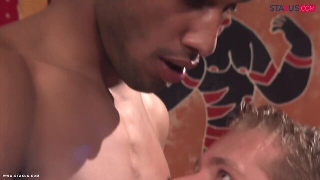 Tiny twink gets spit-roasted to the fucking limit today - Staxus