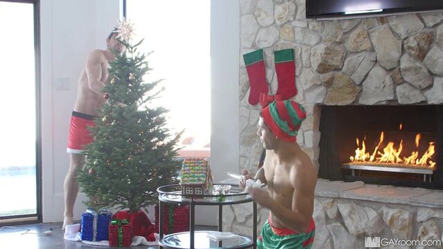 Young lovers prepare for Christmas and exchange massive milky loads by the fireplace.