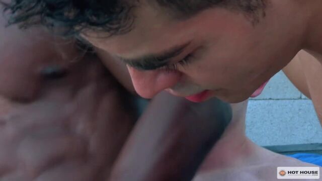 After a long hard day of working out in the hot sun, Kurtis Wolfe sits back to let his wrestling buddies, Cazden Hunter and Liam Cyber, worship his cock. The two hunks take turns on Kurtis' thick dick, choking it down to the balls until he's nice and hard. Kurtis wants a taste of Cazden's succulent ass and gets behind the stud to eat him out as Liam fucks Cazden's face. Cazden loves all the cock he's receiving and turns around to get a mouthful of Kurtis' pole. As he's sucking down Kurtis' cock, Liam steps in and slides his big monster cock deep inside to fill Cazden's ass. Liam pounds his ass hard until Kurtis wants a turn to feel Cazden from the inside. Kurtis slips his dick into the panting stud and gives it his all until Cazden switches it up and sits on Kurtis' big raw cock. He rides it balls deep as he goes ass to mouth on Liam's pulsing dick. The guys mix up the fun taking turns plugging each of Cazden's holes until they're ready to blow. Liam nuts and stands over Cazden's face as he jacks his pole and fills his mouth with cum. As Kurtis watches Liam blow his load, he pulls out and fills Cazden's ass with his own thick load. Kurtis is still hungry for more and leans down to let Cazden squirt in his mouth to finish off the fun.