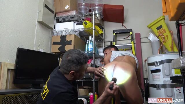 Apollo is a troublemaker, but his antics come to an end when Mike brings him to the back office for interrogation. It turns out that Apollo has been in trouble with the law before, and Mike wants to help him avoid more jail time. He may be a thief, but Apollo is a good-looking guy, and Mike thinks he can get him out of trouble if he just listens to what he says. Mike tops Apollo, fucking the stud hard and reminding him of some steamy times in jail. Apollo missed getting topped, and the danger of this situation excites him. He is completely submissive and gives up his body entirely. Mike fucks until he busts his nut and gives Apollo a hot steamy load.