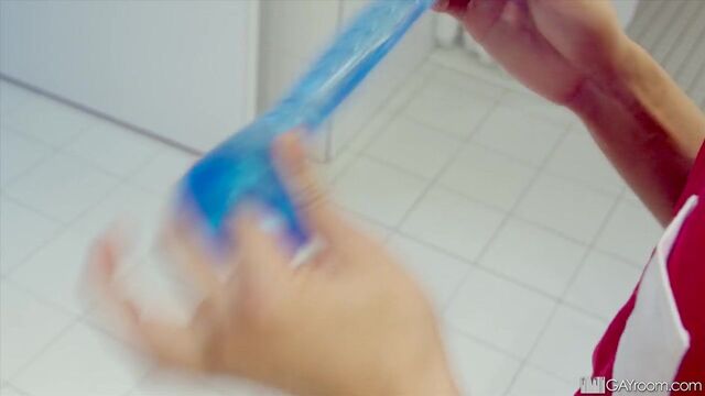 - Description: After horny bottom spies on straight jock stroking his fat cock in the shower, they engage in a steamy, wet fuck.