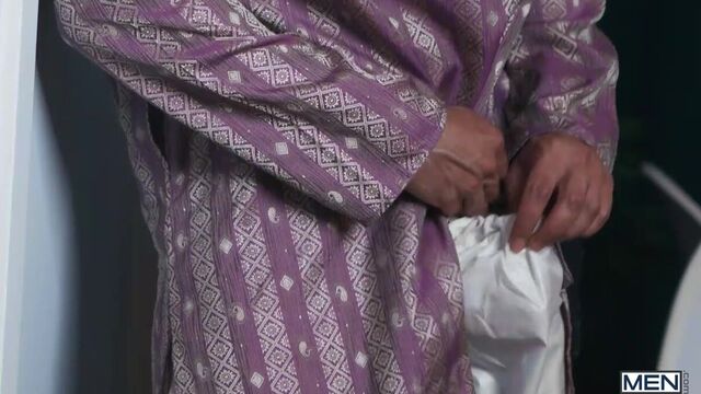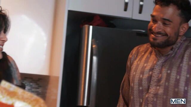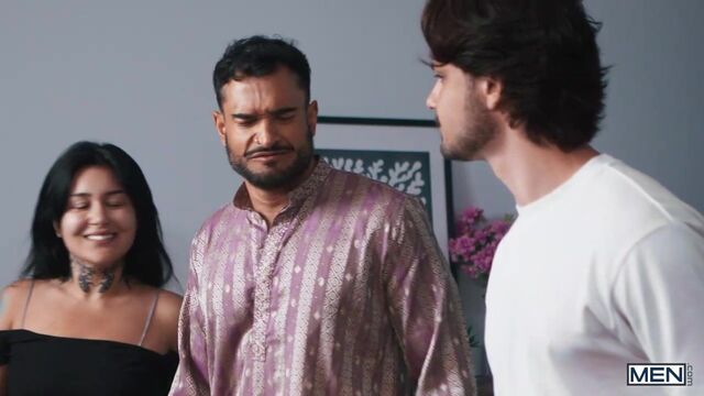 When Enzo Muller gets introduced to Raj, his father-in-law to be, the dark-haired daddy is even friendlier than he hoped, going in for a hug and squeezing his ass! When Enzo's pal, Benny Fox, arrives in skimpy attire, Raj generously offers him anything in his closet... and spies on the red-haired twink as he changes. Enzo gives Raj a sneaky blow job in the hall, then Benny bends over for the daddy and gets fucked in the kitchen! As Enzo and his fiancee cook, Raj and Benny sneak into the dining room to fuck on the table, and Raj gives Benny a facial... just as the pair get caught!