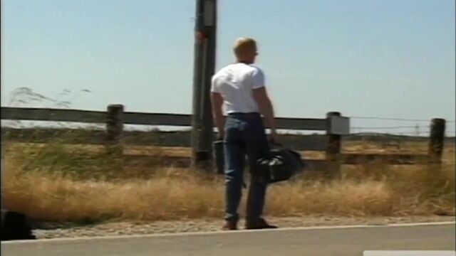 Meanwhile, further west, it seems that farms were meant for sex. Farmhands Nino Bacci and Dan Brewer both take turns servicing the cock of Marcelo Reeves, who is only too happy to be serviced. Bacci rims Reeves as Brewer continues to feast on Reeves' tool, then sticks his tongue up inside Brewer's sweaty hole. The rimfest continues, with Bacci greedily cleaning out both studs' holes. There's more kissing and sucking, then Bacci gets bent over a large barrel while Reeves fucks him from behind. 'Fuck that hole harder!' Brewer shouts out, stroking himself while Reeves does just that, pummeling Bacci with all his might. That's when Gibbs arrives on the scene, looking for his father's lover but finding the threesome instead. 'Come on over,' Brewer shouts, and Gibbs is quick to do so. While Reeves continues to fuck Bacci, Brewer takes care of Gibbs' cock, sucking on it for a spell before offering it to Bacci to feast on as well. Reeves then fucks Brewer while Gibbs takes a turn plowing Bacci. There's plenty of grunting and groaning here, as these four fuckstuds continue their afternoon sweatfest. Both Bacci and Brewer prove to be hardcore power bottoms, taking everything that Gibbs and Reeves have to give. The scenes comes to a juicy finish when Gibbs, Reeves and Brewer all three shoot their loads onto Bacci, who follows quickly behind with a load of his own. Later, Gibbs finds the man he is looking for-his 'uncle,' who welcomes him with open arms, and Gibbs-more of a man than before-realizes that he has finally made his way home.