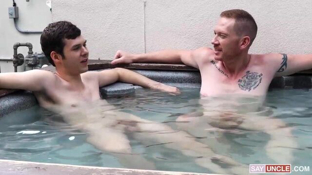 Dakota wants his stepdad, Brody, to take it easy and relax with him in the hot tub. But neither of them has swim trunks or undies for the hot tub. They go commando, and it isn’t long before they start admiring each other’s cocks. Dakota wants to taste his stepdaddy and see if he can fit Brody’s massive dong down his twink throat. The stepdad and stepson play in the outdoor shower before heading inside to really kick things off. Dakota bottoms for his stepdad and takes the big schlong like a pro. Brody fucks his stepson lovingly until Dakota shoots a big load all over his own belly.