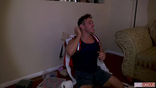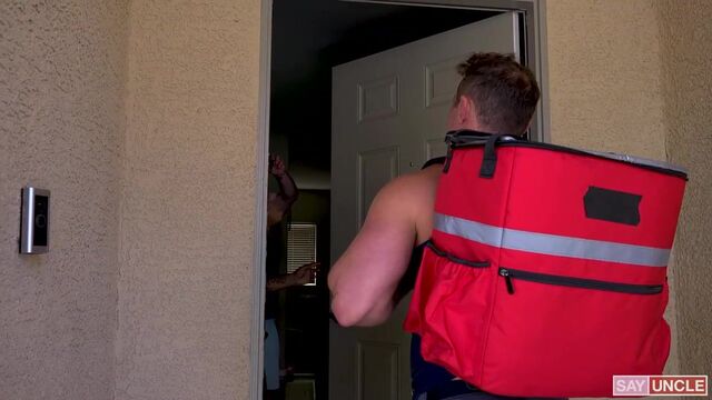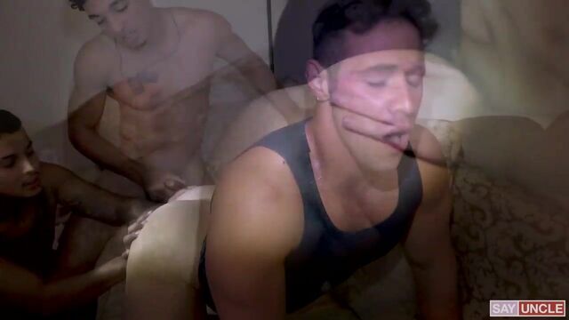 Amone, Dakota, and Victorsbsss, a wild pack of fuckers, are in the middle of a good ol’ and sweaty fuckfest when they hear the doorbell. It’s Kyle, their delivery guy, but they weren’t exactly craving for a late-night snack. These three horny fuckers actually yearn for new material to join their orgy, and it turns out Kyle is one hot piece of meat. Poor Kyle gets pulled into an underground sex club by three naked men and has to leave his other orders to get filled up. Initially confused and resistant, Kyle tries to get it over quickly, but he soon realizes his blood is rushing to his dick as he sucks his new friends’ boners. Acquiring a taste for cock, Kyle actually wants to do much filthier things with the gang. His asshole might be a virgin, but he is more than eager to have it opened up by the boys. Not only does he get butt-fucked for the first time but he also gets a huge tip in exchange for trying his first bukkake.