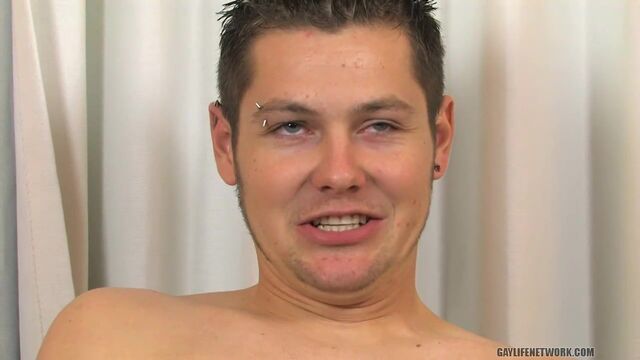 Kyle is an amazing looking stud from Oklahoma! He loves his sexy tattoo! He's bi-sexual and loves brunettes! He's a military boy. He loves skinny guys and punks. He caresses his hard dick through his trousers getting harder and harder, while he talks about his bottoming experiences, he releases his pierced cock, beating it harder and harder, until he cums on his chest.