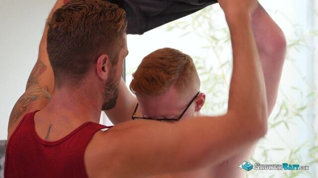Jock Top seduces ginger Bottom into the shower for a steamy, hot pounding.