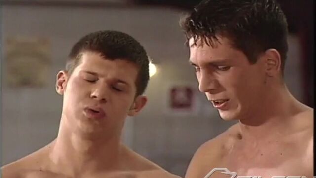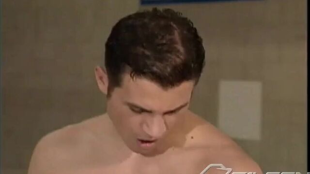 While the rest of the team is busy swimming laps, Danno Alecs, Robert Zsilak, Mihal Laszlo and Lajos Anfort chill out in another pool. So what if the others are working on speed drills and exercises, these horny waterbabes find more diverting poolside action to cavort in. Danno pairs up with Robert while Mihal and Lajos hook up. Soon they make it a happy foursome with Mihal sucking on all three of his buddies’ rigid cocks. He may be the minnow in this school of bigger fish, but his hungry mouth and fuckable ass drive all the action. Robert, Danno and Lajos take turns screwing his hole as he moans and groans with every thrust of their stiff poles, climaxing with four hefty spurts of cum.