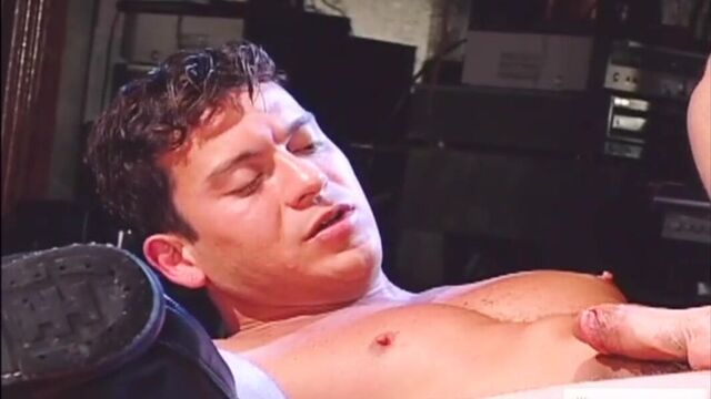 At a sleazy bar, Hot House favorites Troy Punk and Jon Galt run into each other and can barely keep their hands off each other's muscular, hairy bodies. Standing beside each other, they rip off each other's jeans and both their turgid cocks slap up against each other: as they begin to kiss, their cocks look like they're fighting. After eating his round, fleshy ass, Jon backs his own ass up onto Troy's willing cock. The two are joined by skilled powerbottom Carlos Morales. Jon and Troy are quick to fill Carlos up: Troy in his mouth, Jon with his fingers then cock in his ass. Jon shoots on Carlos' muscular ass and back and greedily laps his hefty load up with his hungry mouth. Carlos, his ass still hungry, gets up on the bar and spreads his legs for Troy, who works him over with two massive dildos until he works himself to climax.