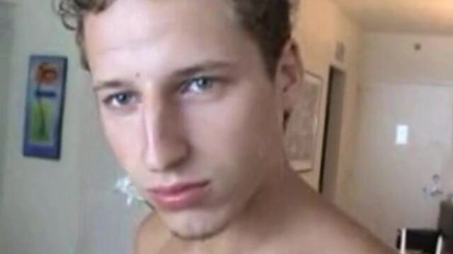 As charming as he sounded on the phone, he looked even better in person. One look in Alec's piercing baby blue eyes and I couldn't wait to see the rest. Of course any 21 year old with a naturally smooth, lean body & the face of the angel is right up our alley but Alec has a lot more going for him then even that.Add to that his adorable accent (like the way he says 'titties') and a sexual energy that is just like his cock: it was bursting at the seams. He peeled down those tight black briefs to reveal a beautiful uncut cock and a pair of smooth hanging balls that he couldn't wait to unload. The way he stares into the camera, it was easy to see he liked having an audience. And after seeing his cum puddle like a lake between those smooth pecs, I was doing some staring of our own!