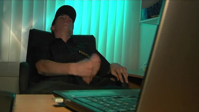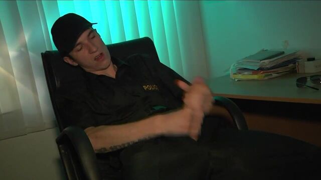 When you’ve got a cock that needs its own zip-code, it’s perhaps only right and fitting that it gets its own scene from time to time – in this instance acting as a short but superb finale to the earlier antics, as mega-hung Caleb Moreton takes time out from his usual police duties to enjoy a deeply satisfying two-handed wank! It’s definitely more than enough to keep even the hardiest size-queen more than satisfied, as Moreton works the entire length of that beefy shaft of his with his usual enthusiasm. Needless to say it’s no time at all before the lad’s tight little jap’s-eye is erupting with a fine show of thick, creamy jizz – a must-see for all of you out there who love to see tasty, uncut shafts yielding the contents of a horny, young man’s balls!
