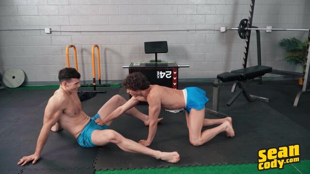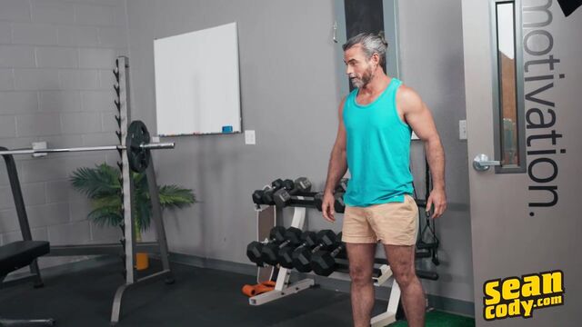Your arms are huge, Daniel says, impressed, as he and Clark do bicep curls together. "Yours are pretty big too," Clark replies. They feel each other's arms and chests, then work out their pecs with some pushups, and Clark takes out his cock while Danny is between his legs. As the twink sucks the muscular top, Daniel enters, and the silver fox quickly joins in, licking Danny's hole and fucking him doggystyle. Clark and Daniel spit-roast Danny, who orgasms as Clark pounds him on a block, then gets covered with two hot loads!