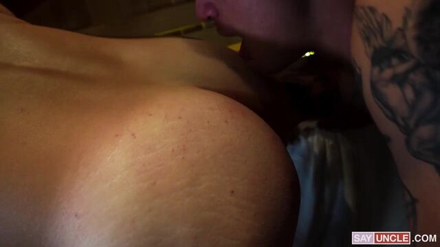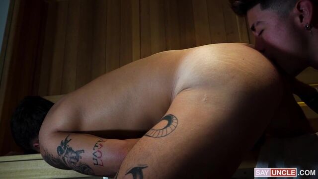Saunas are lustful places, and Brando knows it, so he relaxes in the hot room while he waits for his next prey to come in. Suddenly, the gorgeous Alespice arrives, sporting a cute butterfly tattoo like his as if it were some sort of sign. The subtle conversation between the two men hints at the obvious: they are both desperate for a taste of each other’s sculpted bodies. Alespice makes the first move and reveals his massive cock, making Brando drool. As he starts complimenting it, he expresses his desire to have it inside of his mouth. Despite not being gay, Alespice accepts the offer, but rather than a simple blowjob, he ends up eating Brando’s hole madly. He is dying to fill that nice ass with his juicy cock and all the man juice he’s been building up since he arrived at the sauna. Brando just can’t believe how dominant Alespice turned out to be, and he lets him treat him like his little fuck toy in the hopes of getting his ass creamed.