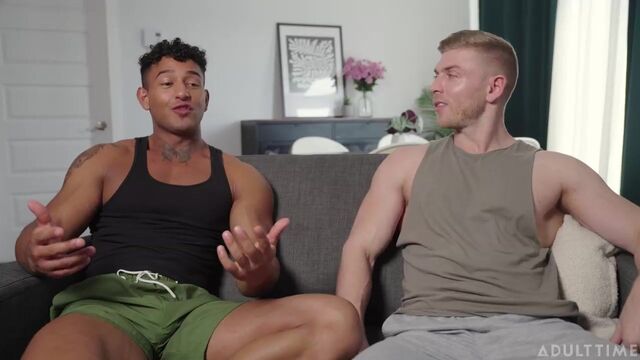 Two straight buddies, Kenzo Alavarez and Matthew Ellis, have enlisted in the military and will be starting basic training soon. They're pretty excited because they figure that the occupation will attract plenty of chicks! But then they realize that it will be really tough trying to bang chicks or jerk off while in a barracks surrounded by a bunch of other guys.That's when they come up with flimsy excuses to jerk off together so they can get used to it. It's better to get used to rubbing one out around a buddy first, right?? But jerking off side-by-side ends up making them hornier than anticipated, and they make even MORE excuses so they can go even further!
