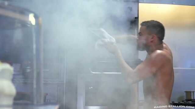 Business booms at the 'Cake Shop' and the owners hire a new assistant in the kitchen, the sassy smartass and sex pig, Beaux Banks. After hours, Beaux sneaks his huge, hung fuck buddy Devin Trez through the backdoor, so he can use Beaux's backdoor any way he wants. In Devin's case, that means getting his tongue deep in that greedy ass and fucking it hard, bareback and without restraint till he splatters Beaux's butt with his pearly spunk. 'You ready to get inside these cakes?' Beaux teases. 'Definitely,' says Devin, as he whips up a giant creampie that leaves Beaux drippy.