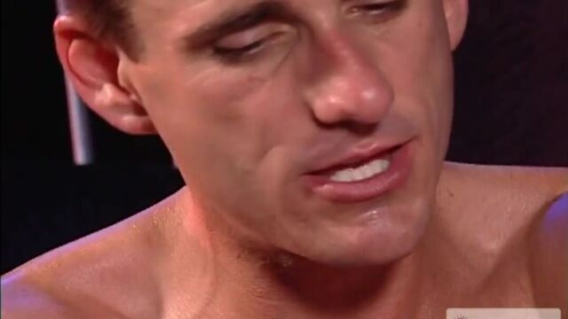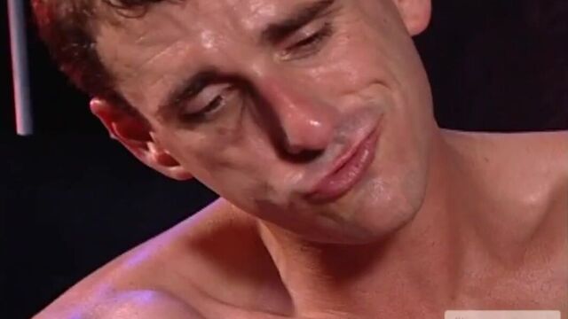 Scene Five finds Sky Donovan behind bars, staring longingly at Jon Ashe's monsterous cock. Donovan amazingly manages to get most of Ashe's cock in his mouth (he must have a trick jaw!) Ashe takes Donovan into a side room where he fucks Donovan on his gigantic rod. No pain - no gain!