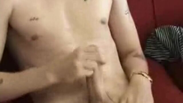 With skin that pale, it was immediately obvious that Max is a creature of the night. His cell phone never stopped ringing and we figured him just a typical straight boy looking for some extra cash for the next rave. But the real attraction for him was his desire to break into adult videos.He couldn't wait to get his clothes off and started with a tour of his tattoos. When he dropped his pants, there was at least 6.5' ready to be sprung free inside those boxers. Then he looked at us and said, 'Don't worry, I'll get hard soon.'And did he ever! It took two hands just to measure a dick this big & a wide-angle lens just to get it all in the shot. Some guys this hung never seem to get fully erect. Not our Max. His dick gets hard enough to pound nails into cement...but he opted to just pound out a huge load of cream all over his stomach.