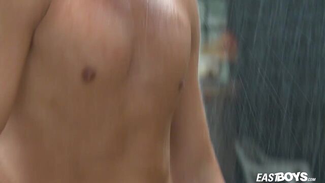 Blonde and cute athlete Louis Hyder shows off his hot touches on his body in only semi-transparent shorts during a very rainy afternoon. We then walk him home, where he takes off his wet shorts and lets his dick get hard, exploding with his cum while jerking off.