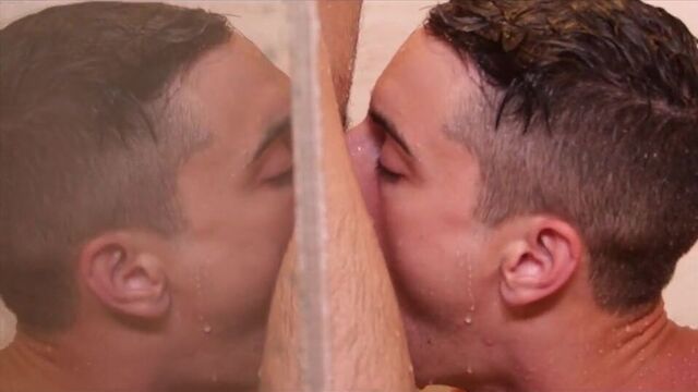 Cute twink creeps in on straight jock showering and ends up with a dick in his ass.