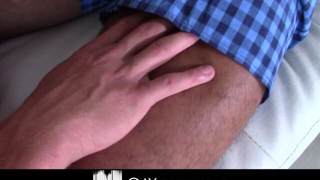 Things heat up when this hard muscle jock catches his roommate spying on him while he relaxes on the couch.
