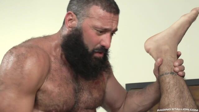 Teddy Torres and Alexander Kristov in all-bear fuck scene - Raging Stallion