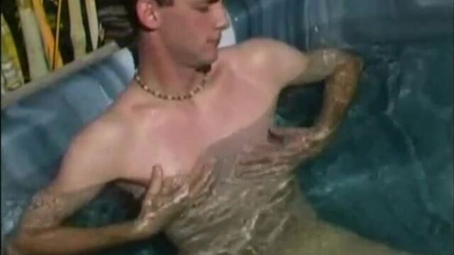 20 year-old Todd Starr's horny and looking for a good place to beat his massive meat. He finally settles on a secluded hot tub, where he gets comfortable, starts playing with his gorgeous body, gets nicely boned up and strokes his 8 incher to a spurting climax all over his belly.