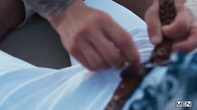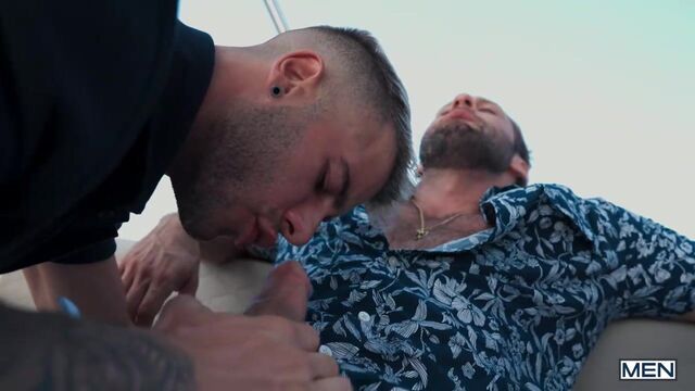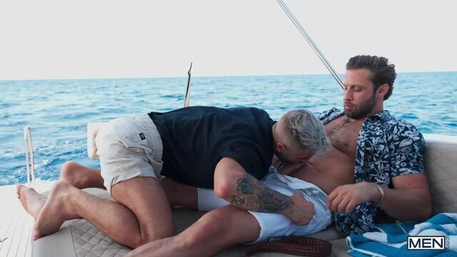 Dom King is relaxing on deck on his cruise when cute waiter Allen King offers him some service. Dom asks the waiter if there's any way to get a hand job, and when Allen pulls the guest's big cock out of his pants, he upgrades him to a blowjob! That's when Captain Nico Zetta says hello and offers Dom a tour of the boat, flashing his ass at the sexy passenger. Dom is about to fuck Allen when the captain joins in for a threesome! Nico and Dom spit-roast Allen, then it's the captain's turn to ride Dom's cock. Allan sits on Captain Zetta's face while Dom pounds him, then gets drilled again before cumming and taking two loads all over him.