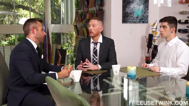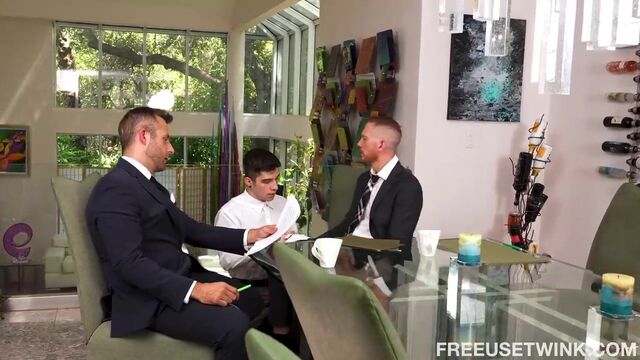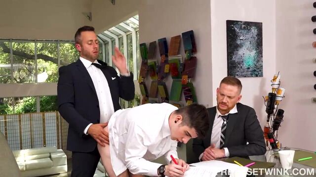 Harisson finally landed his first job as an intern in a very prestigious firm. The boy couldn’t be more excited for his first big shot and he really doesn’t want to fuck it up. His boss, Mr. Kayman is stern and loves things done a certain way. He needs to know there’s always coffee ready for the clients, the contracts are available when needed, and that his twink intern’s ass can be freeused whenever he pleases. When Mr. Someone drops by for an important merger, Harrison accidentally screws things up quite a couple of times, making Brody mad. Yet, the boy is very diligent and takes his duties of sucking his boss and clients’ cocks very seriously. Plus, discussing the merger is much easier while you stuff both your twink intern’s hole and mouth with dick. He might not yet be there, but the future shines bright for this handsome intern!