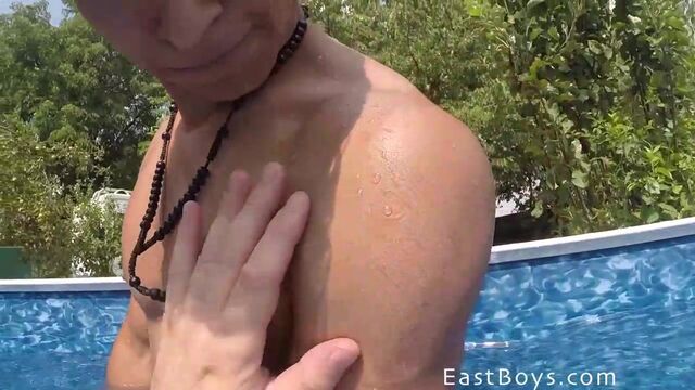 Vincenzo Mazzi is cool looking muscular dude you know from previous videos. This footage is all about flexing muscles, working out and having fun flexing and play fighting in the pool. You can observe Vincenzo naked taking shower before fun continues in the RV, as you will se from a short preview. Due to a decision by the payment company, we had to remove inappropriate scenes. Don't worry, it's only a few seconds and EastBoys doesn't want to deprive you of the entire video for a few seconds. Have fun!