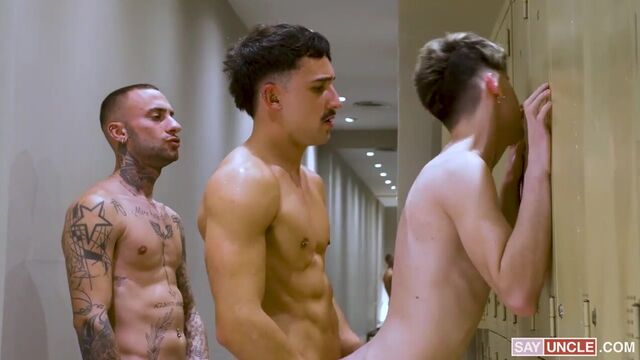 Locker rooms are the hottest place in the world. Just ask Argentino XXL and Dragon Rojo, two soccer players who just had a sweaty match and need to get off desperately. These two jocks are horny, their cocks are hard and they have noticed Elliot, a hot twink from the other team that has been checking them out during the whole match. The locker room is the perfect place to show Elliot that they are packing and that they are in dire need of a hole to deposit their creamy load. As soon as Elliot gets a glimpse of the guys’ huge dicks, he drops to his knees and starts sucking. Nothing makes these two studs hornier than a kinky twink desperate for dick. Soon, they both take turns to stuff Elliot's ass and jerk off while watching this steamy scene. Used to cumming together, the soccer players now have a fucktoy to share, so they will enjoy it till they shoot the last drop of man juice.