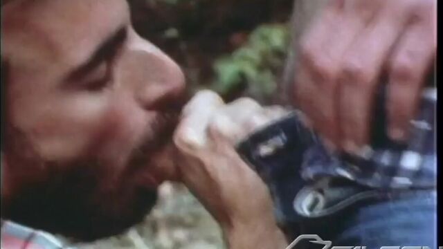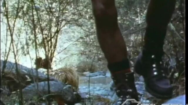 Rocks and Hard Places':Al Parker and Jeff Turk fuck outdoors. Set near a stream, the two hunks demonstrate oral skills after cruising heavily. Soon Parker, his cock and balls trussed with a work boot string, hard-jabs the blonds' hole and turns him over to Turk who finishes him off.