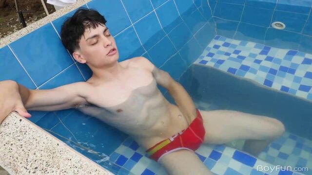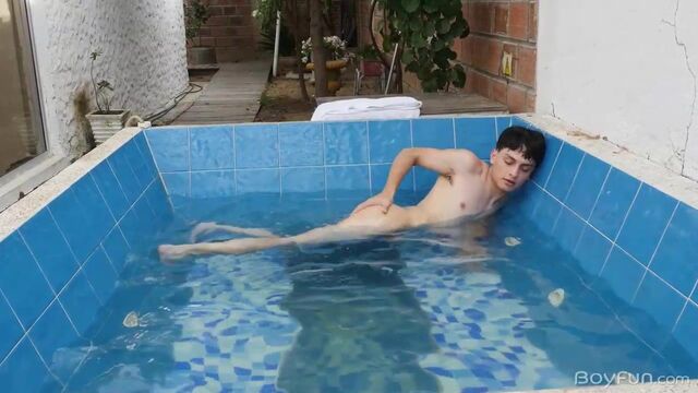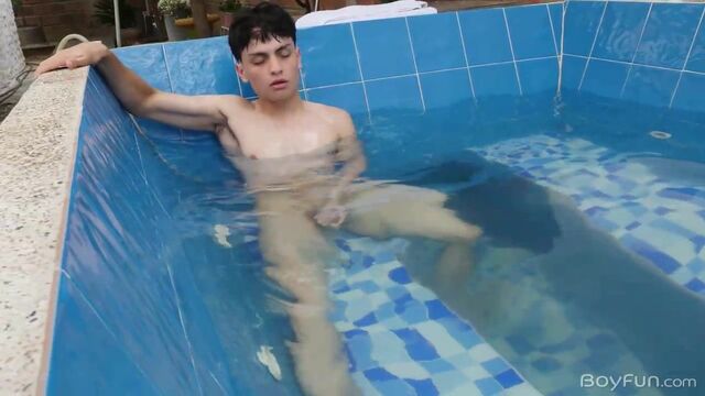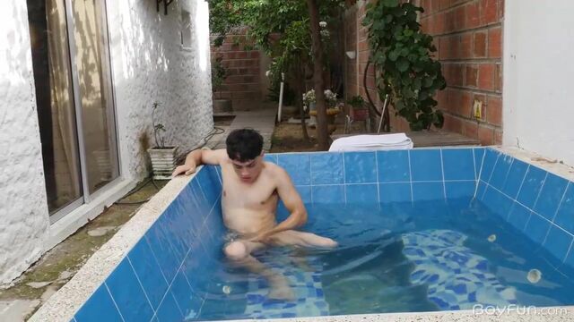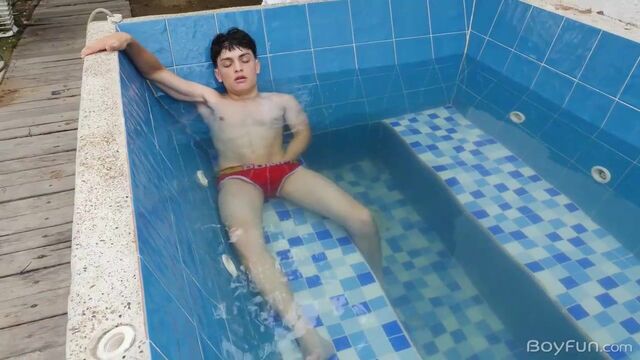 Luis Angel jacks off in a swimming pool passionately - Boyfun