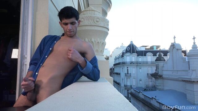 Horny solo stud Fabrice Rossi playing with his HARD dick - Boyfun