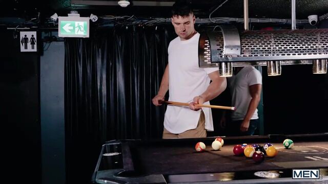 It's the first time coworkers Jackson Cooks and Malik Delgaty have hung out outside work, and as they play some darts, Jackson takes the opportunity to touch Malik as much as possible. Malik checks out the shorter guy's ass as Jackson breaks at the pool table, but Jackson can't hold back from squeezing Malik's ass and messing up his next shot! Malik decides to teach Jackson a lesson, drilling him on the pool table, then flipping him over to fuck his face. Jackson wants more, getting to all fours for Malik to raw him on the green felt, then bouncing on that big cock till he cums. Malik says they're not done yet, giving him every inch on his back before cumming right on target on Jackson's face.