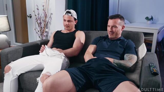 Kinky studs Derek Kage and Enzo Muller fuck on a couch - Jerk Buddies