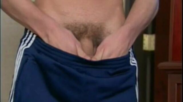 Handsome, 19 year-old Dylan watches a hot porno flick while stroking himself through his running pants. Soon he's rock hard, and releases his gorgeous 7 dick from its
