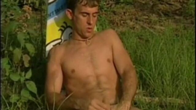 Bo has been skinnydipping in the lake and walks ashore in a secluded area, where he gives in to the warm sun and fresh air, and pounds his big dick into a frenzy.