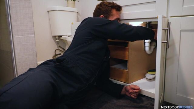 Aaron Elias is having a plumbing issue, which leads him to call his favorite handyman, Carter Woods. Carter comes over to save the day, but while fixing the plumbing, Aaron proposes one last pipe for him to fix... his cock! Will Carter do