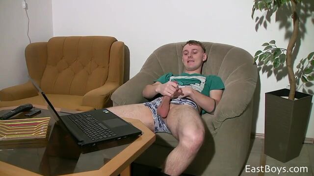 More exclusive footage from the lens of Luis Blava: George Hughes is watching some porn on a laptop, strip his pants and starts fondling his cock, moaning loudly. This is followed by jerking off. Then the unthinkable happens: his mom walks in! (OK I was kidding, something else happens),