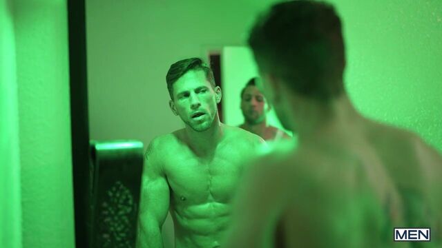 Roman Todd thought he was satisfied with his average life, until he saw Dom King working out at the boxing club. Roman drifts away from his wife and can't focus at his job, only thinking about the next time he can escape to the club. Gradually he lets Dom get closer and closer until they jack each other off in the shower, and before long Dom is fingering his hole and fucking him in the bathroom! Roman rides Dom's dick for the first time, then gets drilled against the weight rack. Roman cums hard as Dom pounds him on the floor, and the top pulls out and shoots all over him.