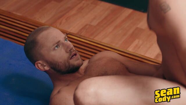 After their workout, River and Brysen are horny, especially when they start stripping down in the locker room. The guys get naked and kiss, and Brysen sucks the hard top, who quickly bends him over and slides into his eager hole! Brysen rides River on the bench, then cums as he gets drilled on his back. Brysen moans as River pulls out and shoots a hot load on him!