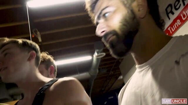 On a hot and busy day, Adam, Caden, and Evan are working hard on their mechanic workshop when Jack shows up. His car just broke and he needs urgent help, so the mechanics try to repair his vehicle as fast as possible. Rather than being patient, Jack is kind of a dick about it, constantly asking the guys when the car will be ready and telling them that he has urgent business to attend to. The guys quickly get fed up with the bratty boy’s entitled attitude so they try to drive him away so they can do their job peacefully. Jack shows his asshole side once more and demands to speak to the manager, prompting the guys to finally lose it. Eager to teach the spoiled brat a lesson, they throw him to his knees and show him what happens when in their shop you pretend that you are better than everyone else.