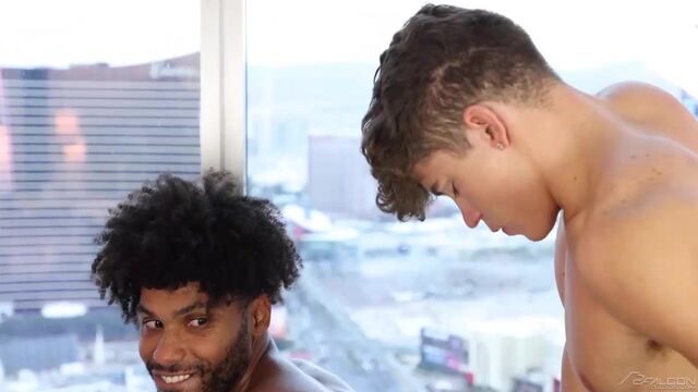 Tony Genius loves fucking in front of the camera, but in this particular scene, he's 'In Control', calling the shots, and getting the chance to show off his appreciation for Drake Von's fat cock. After finally being able to break away from swallowing down his partner's famously big dick, Tony gets into position to take Drake's girthy hog for a bareback ride in front of a wide-open window overlooking Las Vegas. Tony continues getting filled up by the twink's mighty meat until Drake pulls out, has his dick go ass-to-mouth, and then unloads directly onto Tony's tongue.