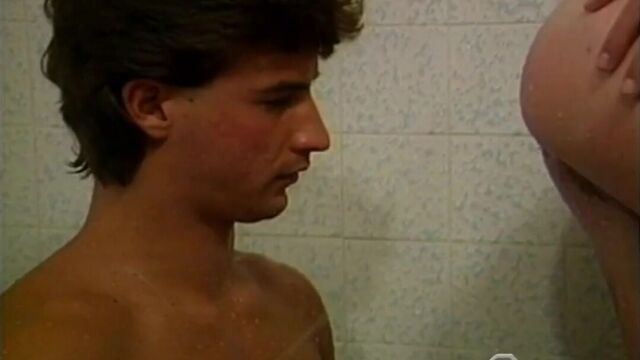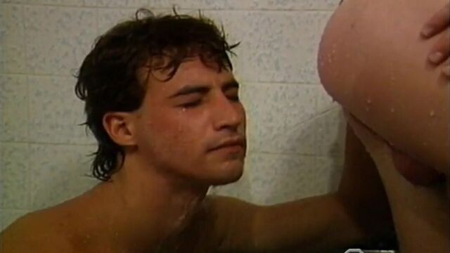 Michael Wayne is out running and stops at his friend Rick Turner's place to pick up his bike. Rick invites him to use the sauna that he has. Things really heat up in the sauna when Rick asks Michael if he has ever had a blow job from another guy. Michael hasn't but doesn't refuse Rick when he asks politely if he can suck his cock. When they're done in the sauna Rick and Michael clean up with a shower shot in the bathroom...filling their asses and spraying them out.