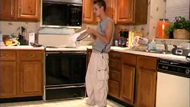 19 year-old cutie Evan Lucas plays houseboy in this scene. As he does dishes, vacuums and cleans, he gets progressively more undressed, and more horny. Moving to the futon to get comfortable, Evan starts stroking his hard, mouth-watering
