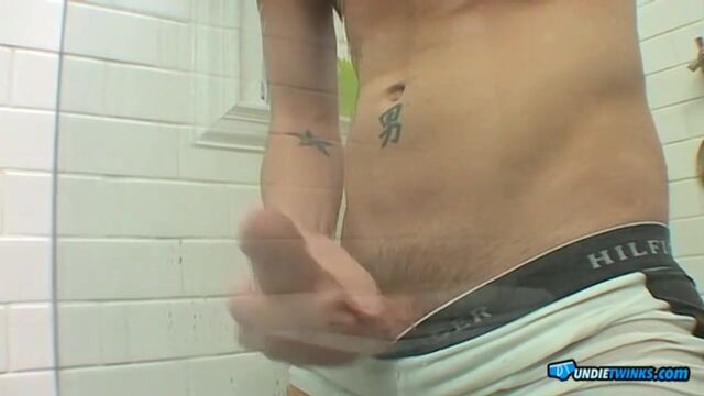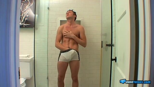 Beau Marcus gets wet and hard in his tight white boxerbriefs in the shower, giving a HOT show for the camera jerking his big uncut cock until he blows a creamy load all over the shower wall.
