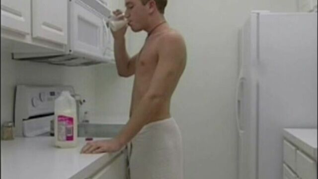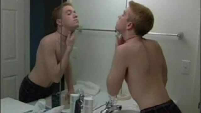 18 year old blonde, blue-eyed Corey Stevens is up and about from a good rest, gets out of bed and heads for the bathroom, where he splashes a little cold water on his face to start the morning, before undressing and stepping into a hot shower. After