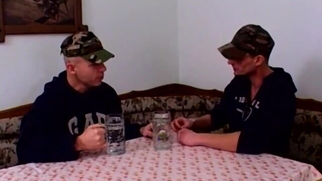 Leder Bogen and Szasz are off duty Army lads, enjoying a few drinks while talking about their life in the military. Pretty soon they get loosened up and one makes a sexual move on the other. This lead to some hot cock sucking and ass fucking fun. The bottom really loved getting fucked and it looks like it wasn't his first time getting boned, either!